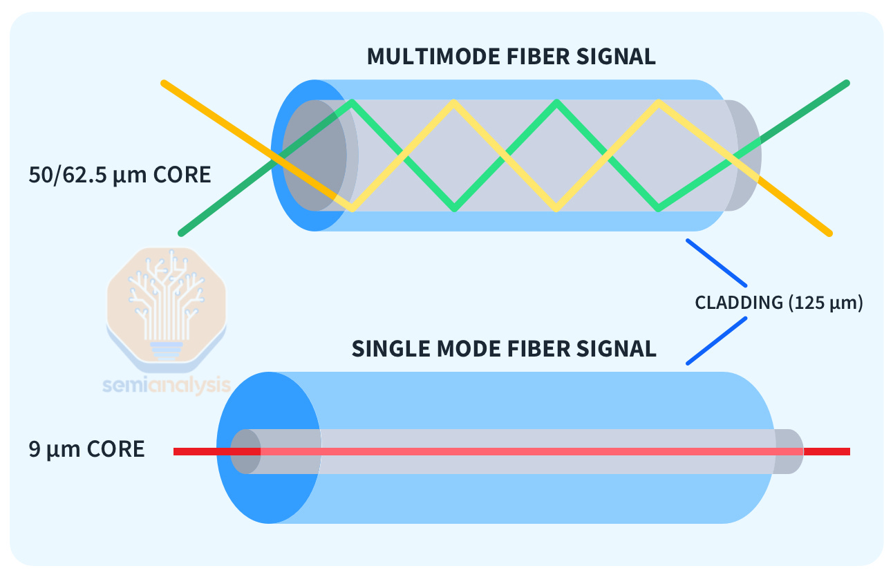 These clusters are networked with optical transceivers, which come on a sliding scale of cost vs reach. Longer range “single mode” DR and FR transceivers which can reliably transmit signals ~500 meters to ~2km but can cost 2.5x as much as “multi-mode” SR and AOC transceivers which only support only up to ~50 meters reach. Furthermore, campus level “coherent” 800G transceivers with over 2km of range also exist albeit at 10x+ higher pricing.