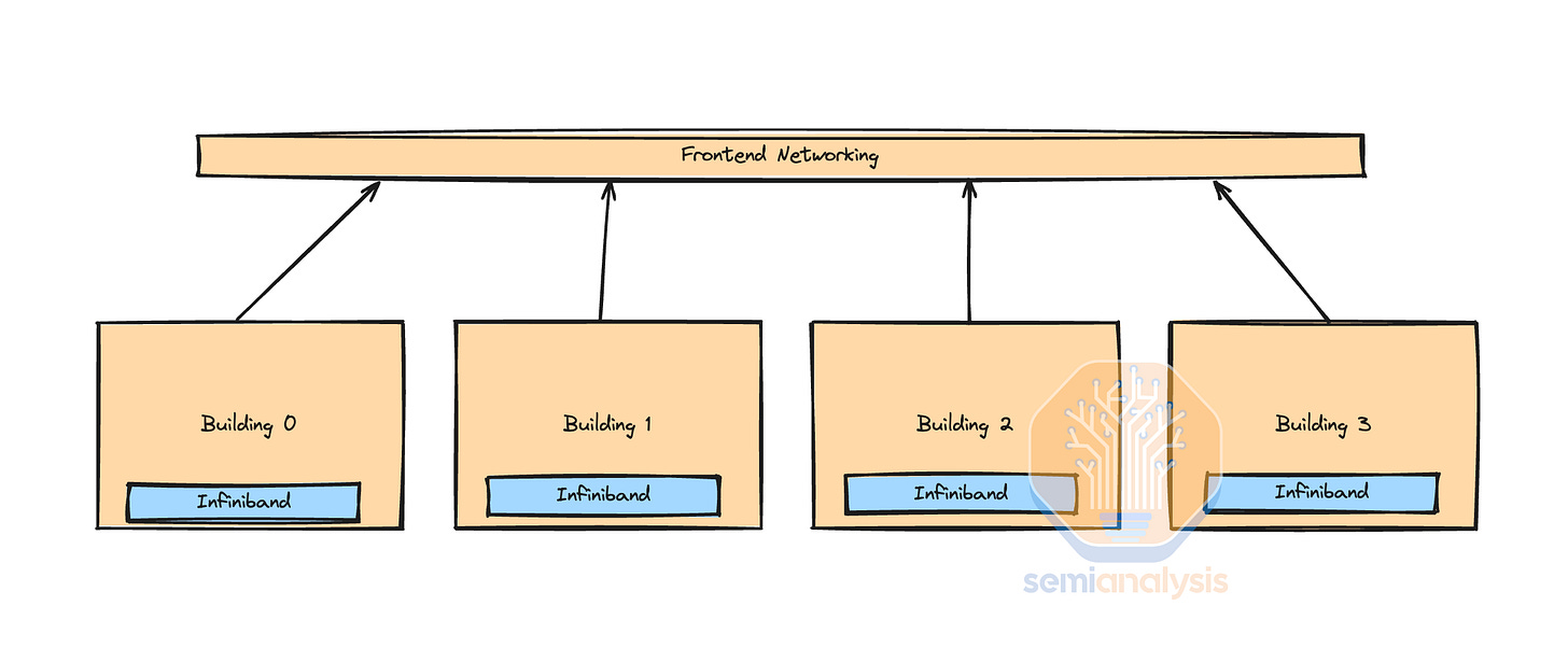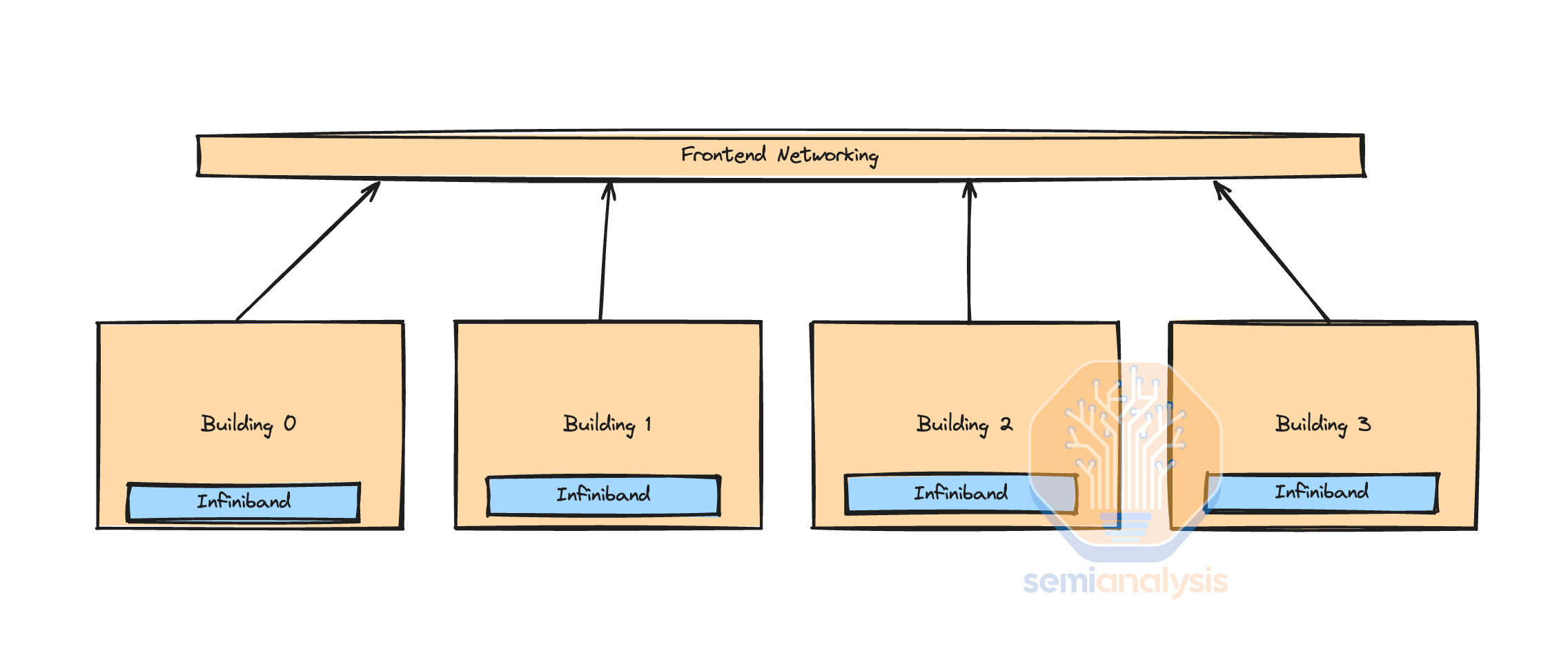 One major firm trains across multiple InfiniBand islands with frontend Ethernet. This is because the cost for frontend networking is much cheaper and can utilize existing datacenter campus networking between buildings and region routing.