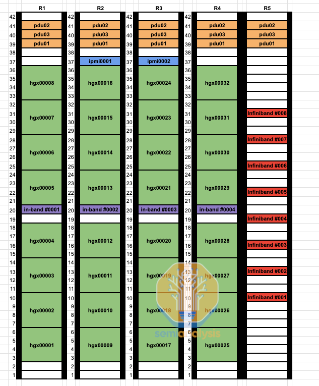 Today we will dive into large training AI clusters and the infrastructure around them. Building these clusters is a lot more complicated than just throwing money at the problem. Achieving high utilization with them is even more difficult due to the high failure rates of various components, especially networking. We will also walk through power challenges, reliability, checkpointing, network topology options, parallelism schemes, rack layouts, and total bill of materials for these systems. Over a year ago, we covered Nvidia’s InfiniBand problem which resulted in some companies choosing Spectrum-X Ethernet over InfiniBand. We will also cover the major flaw with Spectrum-X which has hyperscalers going with Broadcom’s Tomahawk 5.