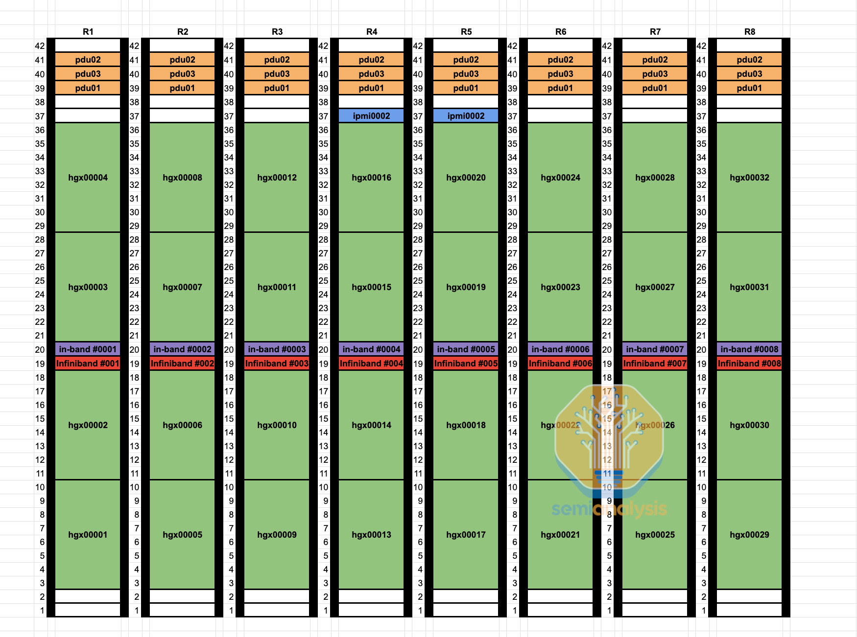 Furthermore, initial cabling for a rail optimized design is extremely time consuming for datacenter technicians since the ends of each link are up to 50 meters away and not on the same rack. Compared to a middle of rack design where you have your leaf switch in the same rack as all of your GPUs that connect to the leaf switch. In a middle of rack design, you can even test the compute node to leaf switch links at the integration factory since it is all within the same rack.