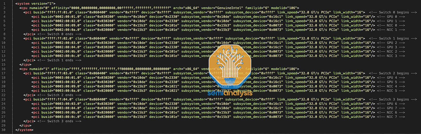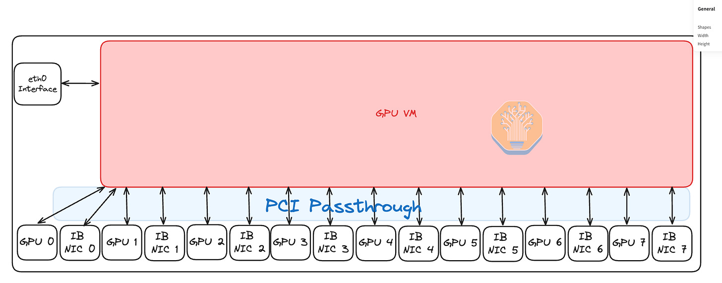 You will also need to bind your vLAN ethernet interface to your GPU VM. Creating CPU VMs using the common hypervisor is a simple task that most Computer Science grads can do nowadays. To make a VM into a GPU VM, you also need to do PCIe Passthrough for your GPUs and InfiniBand NICs. Fortunately for Neoclouds, NVIDIA has yet to figure out a way to charge for PCIe passthrough on their GPUs and NICs. We have also seen Neoclouds use SR-IOV to create virtual InfiniBand NICs and pass though into the Virtual Machine instead of just the physical InfiniBand NIC, although using SR-IOV is not strictly needed.