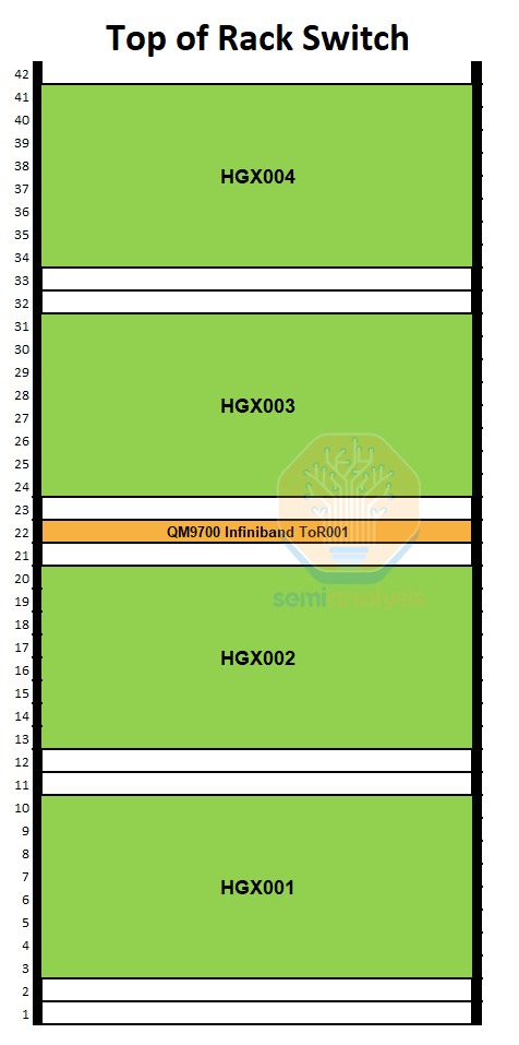 In the Nvidia Reference Design, the leaf switches are on a separate networking rack and the spine switches are on a dedicated networking rack meaning that using 100% optics is required.