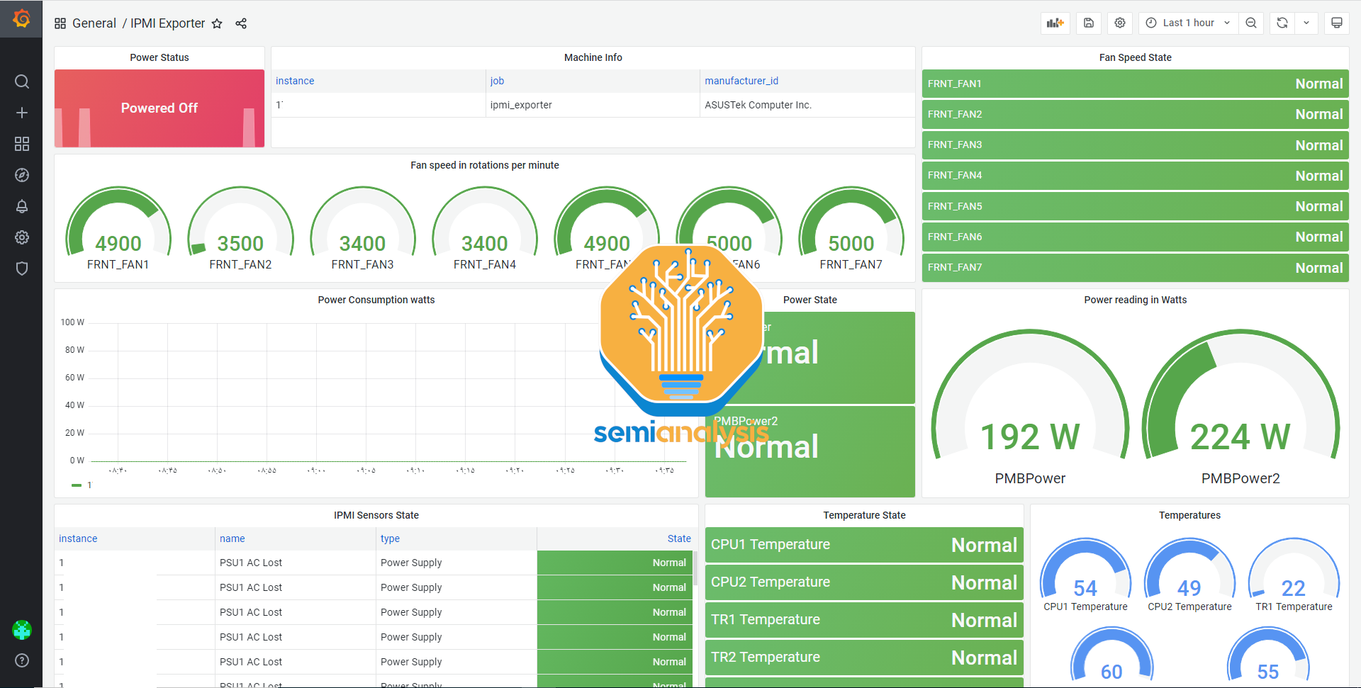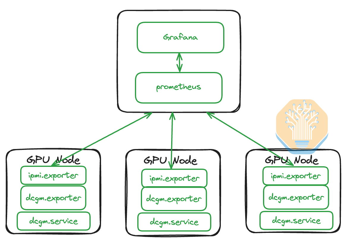 Furthermore, we also recommend that Neoclouds install ipmi-exporter to monitor overall fan speeds, temperatures and other BMC metrics. It is standard practice when running CPU deployments to have some sort of centralized dashboard with all of these metrics.