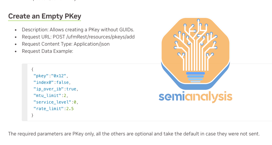 An alternative to purchasing UFM would be to use the open subnet manager which is only available through a terminal command line interface, but fortunately you can create a simple REST server that wraps the command line and uses a subprocess python library to execute the commands for you. For your first cluster, we would recommend just buying a UFM license but for future clusters, this is something we recommend Neoclouds look into for cost savings.