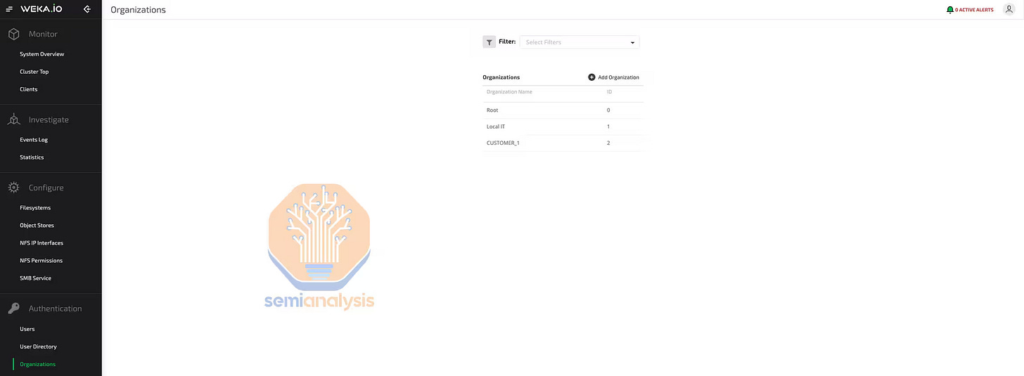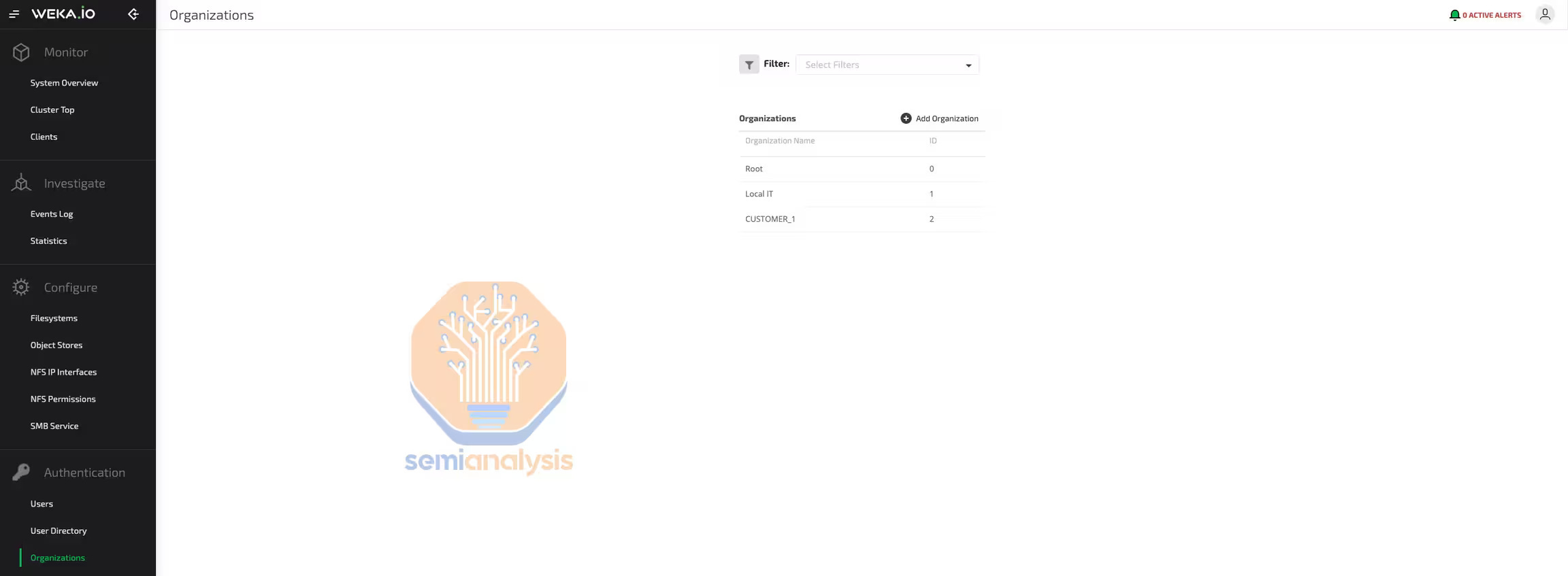 Within Weka and Vast’s Data software, you can easily create Tenants (called Organizations in Weka) and set up an access control policy for each storage volume to be assigned to just one tenant. This software provides strong guarantees that if the policies are set up correctly, then each customer’s users will only be able to access their own storage volumes.