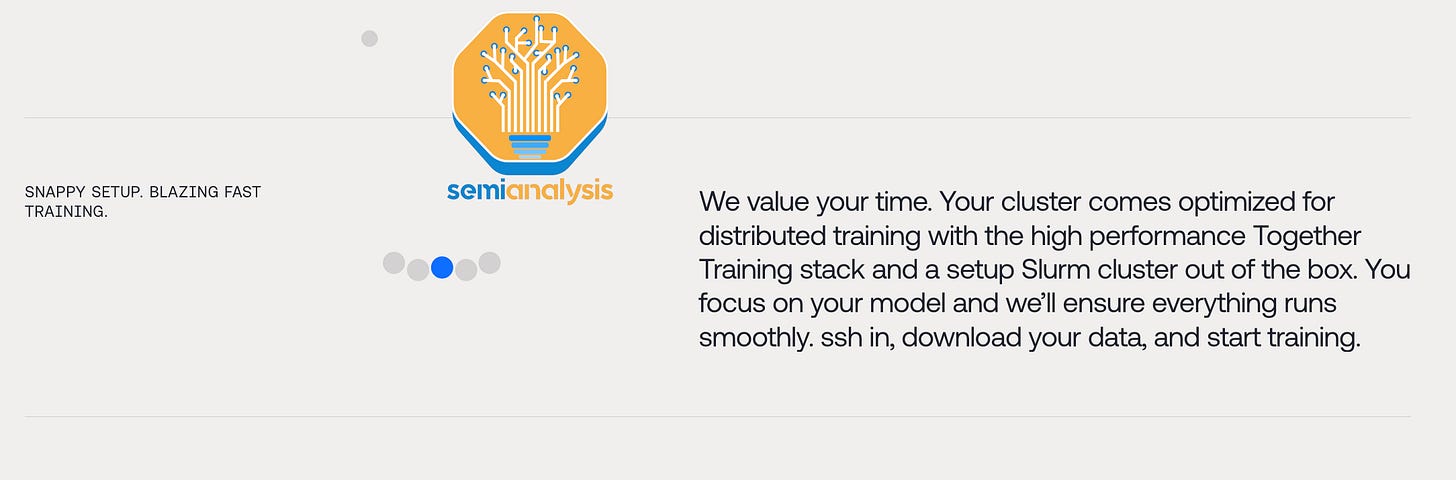 Delivering competitive pricing, strong reliability and a properly set up cluster is the bulk of the value differentiation for most Neoclouds. The only differentiated value we have seen outside this set is from a Neocloud called TogetherAI where the inventor of Flash Attention, Tri Dao, works. TogetherAI provides their GPU customers a set of exclusive hyper optimized CUDA kernels that are made to be easily integrated into the customer’s existing training code, thus providing the customer with a quick 10-15% performance increase in training throughput.