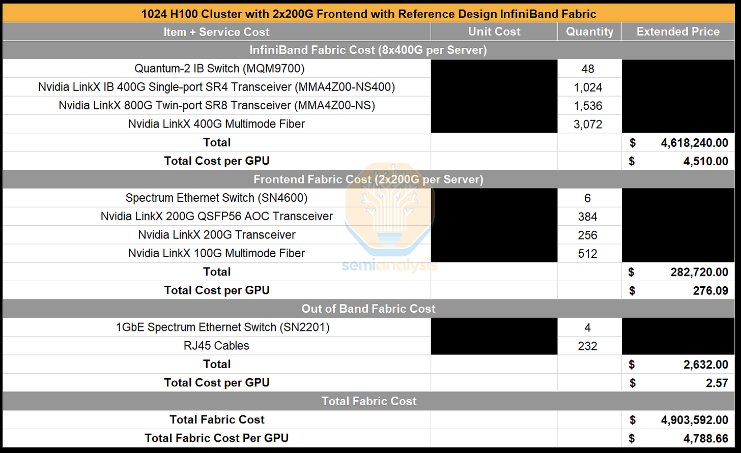 Skipping rack level for now, we will move onto the cluster level BoM, starting with networking, which is the largest cluster cost driver after compute nodes.