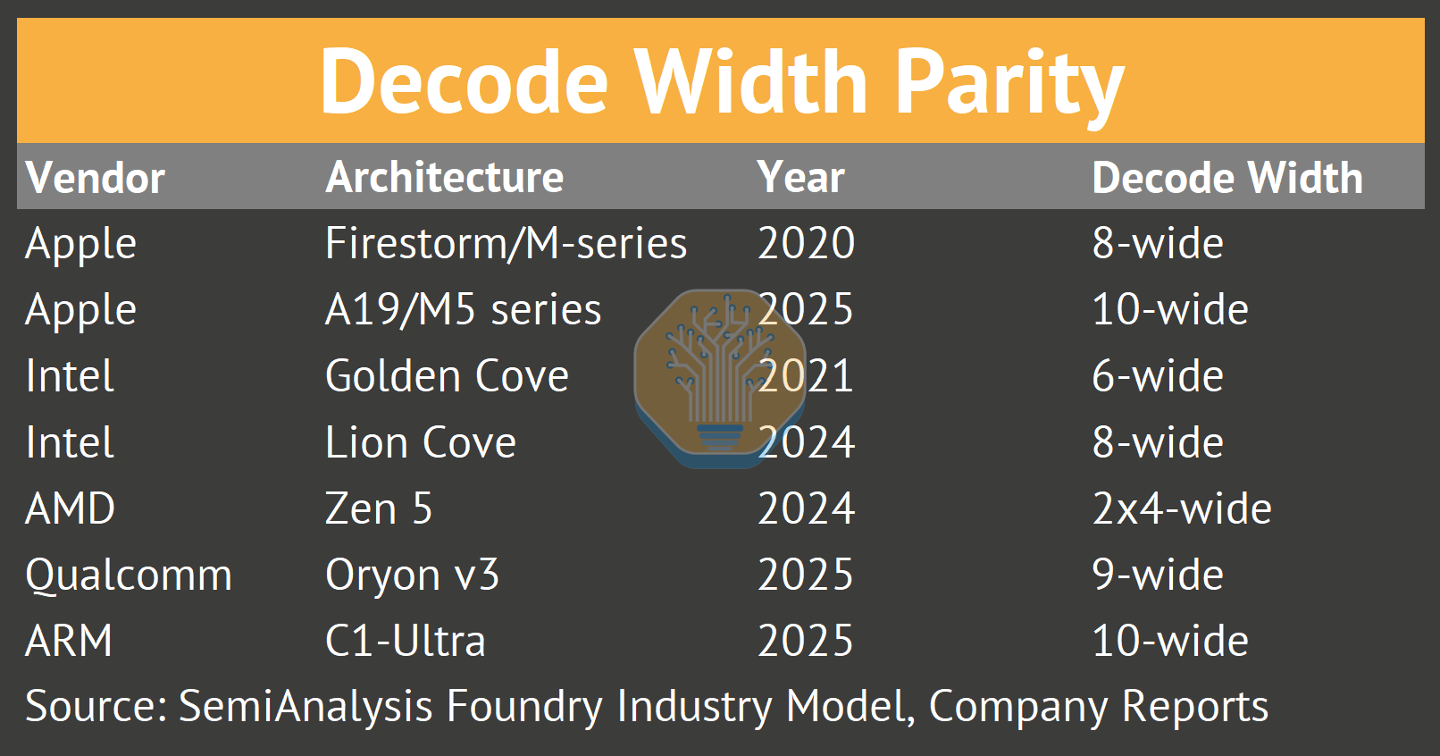 Apple introduced 8-wide decode with A14/M1 in 2020, four years ahead of competitors. But by 2025, the competitors caught up.