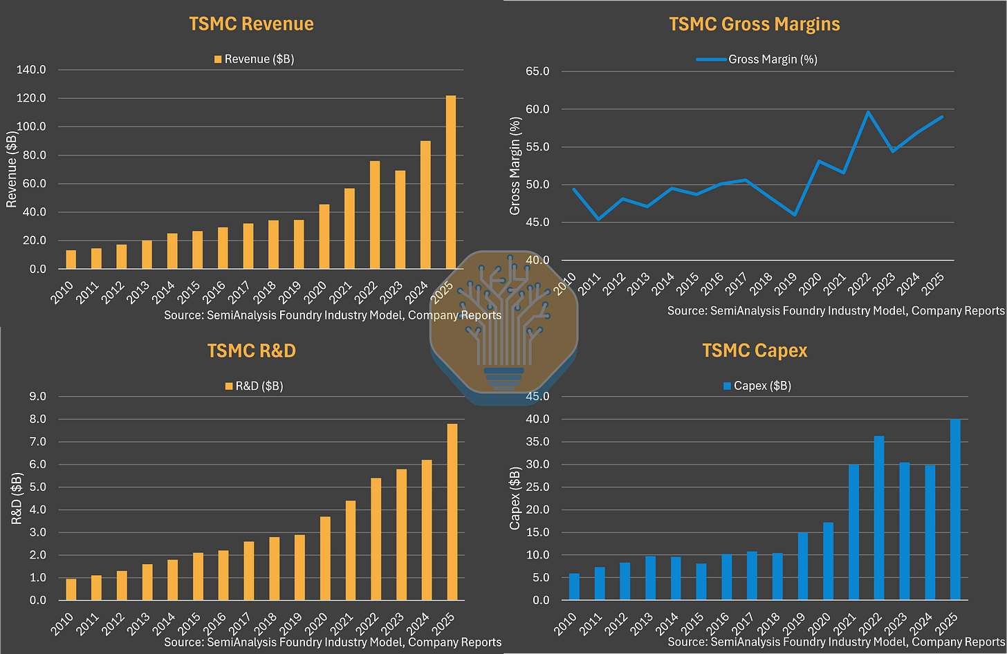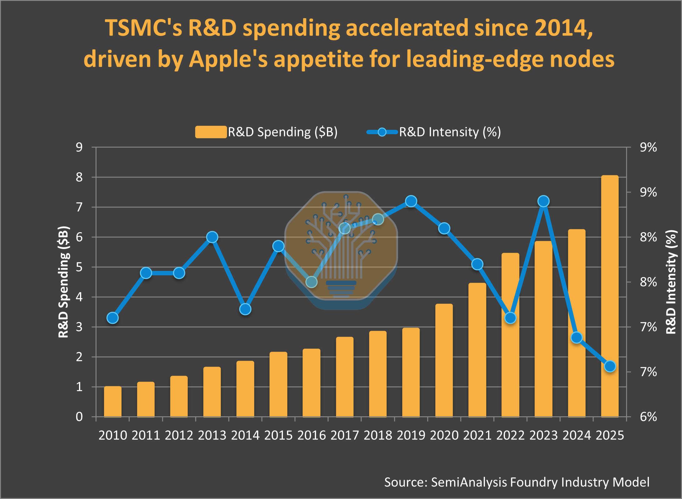 · R&D: $1B (2010) to $8B+ (2025) = 8x growth