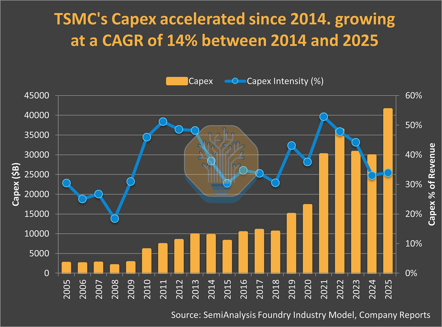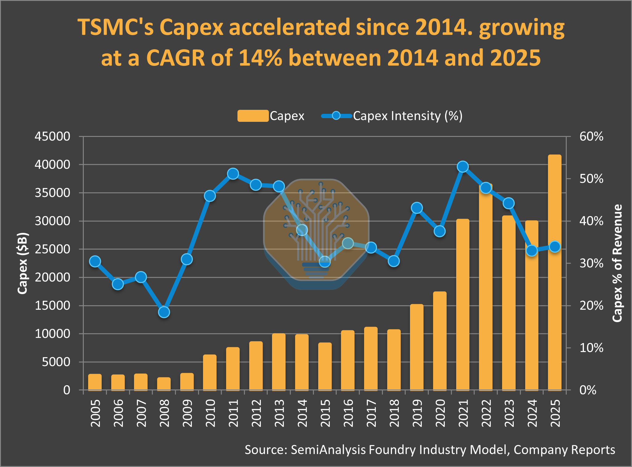 · CoWoS Revenue: $0.6B (2018) to $8.4B (2025) = 14x growth