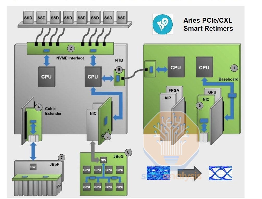 Astera Labs’s first major customer was actually Amazon for “typical” (non-AI) cloud workloads. In some instances, Aries retimers can help Cloud Service Providers achieve lower TCO than alternatives for high data rates. The below image shows where retimer can be found within IT equipment.