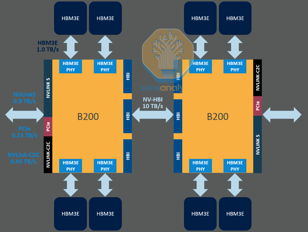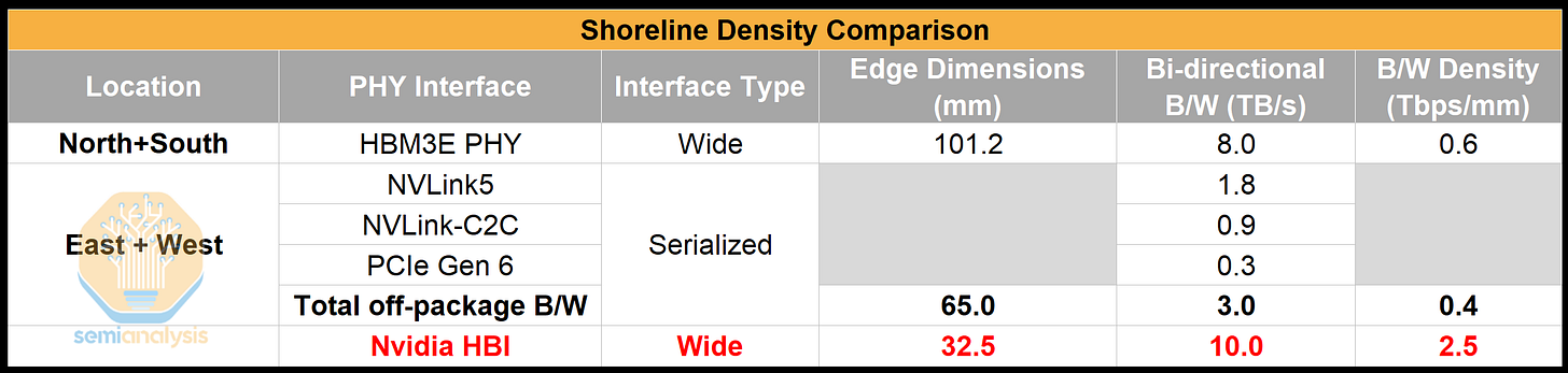 To illustrate, 5th generation NVLink on Nvidia Blackwell offers 900GByte/s (7,200 Gbit/s) of uni-directional bandwidth per GPU. That is 9x more bandwidth per GPU than the 100GByte/s (800Gbit/s) per GPU on the back-end scale out network (using the CX-8 NIC for the GB300 NVL72). This also creates the need for much higher shoreline bandwidth density from the host which has been the impetus for pushing GPU SerDes line speeds forward.