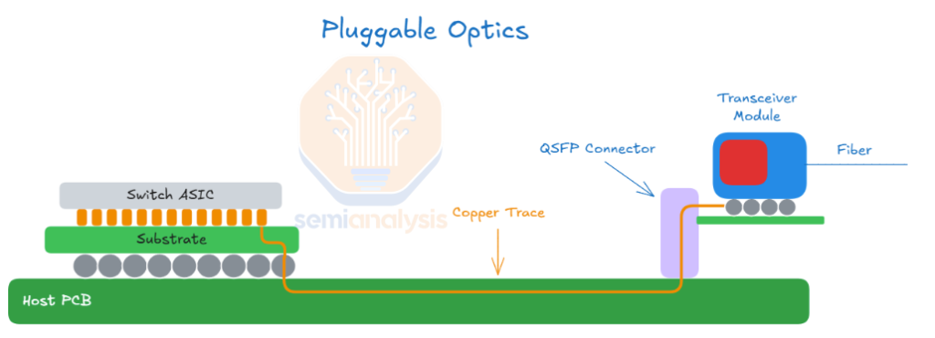 Additionally, there are intermediate implementations that fall between CPO and traditional front-pluggable optics, such as Near-packaged optics (NPO) and On-Board optics (OBO).