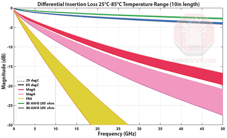 The challenge with CPC lies in the added complexity of the package substrate. The substrate must route power and signals to thousands of these cables. Despite this challenge, CPC remains significantly simpler than CPO, which still has to overcome a number of manufacturing hurdles across multiple parts of the supply chain. We see CPC as particularly attractive for some short-reach applications such as in-rack scale up connectivity, which we will explore below. By bypassing lossy CCL traces, CPC could be the technology that enables 448G line speeds. CPC is also being looked at very broadly for enabling 448G as signals of this bandwidth experience unacceptable attenuation when running through PCBs.