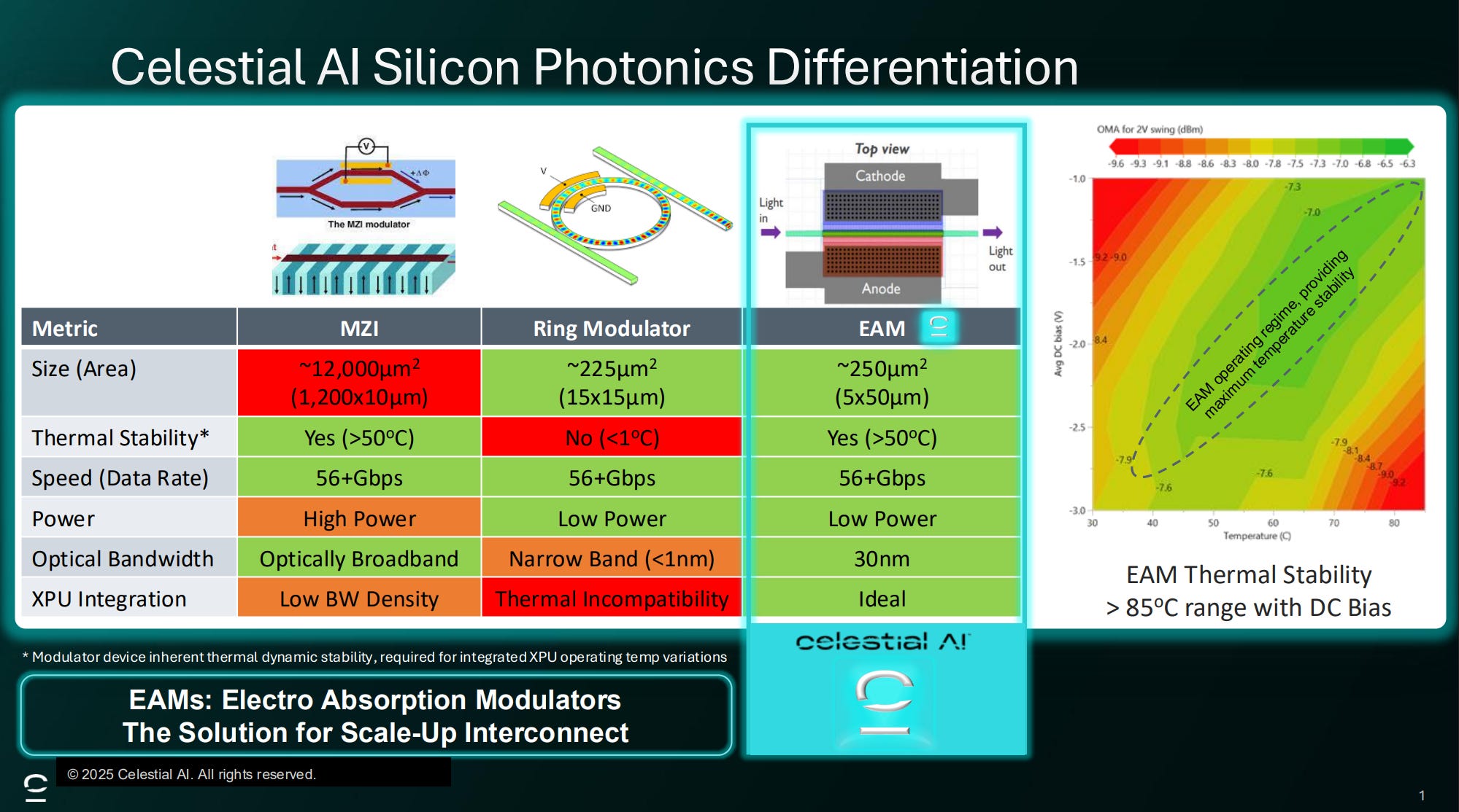 A key differentiator of Celestial AI’s technology is its use of an Electro Absorption Modulator (EAM). Part 3 of this article described in more detail how EAMs work and discusses the advantages and trade-offs when it comes to EAM. We repeat the bulk of this discussion here as understanding the pros and cons of EAMs is key to understanding Celestial’s go to market.