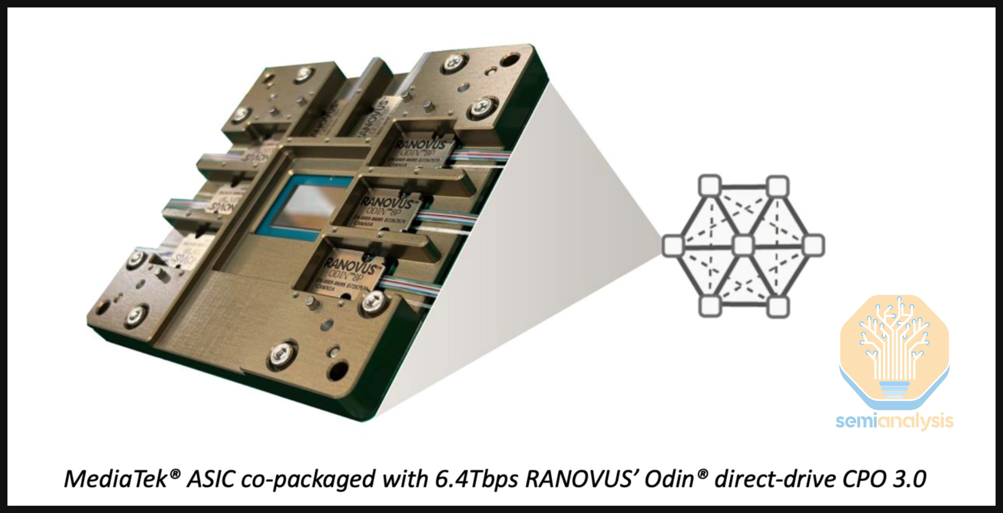 Ranovus has demonstrated interoperability with AMD on its 800G chiplet and has partnered with MediaTek to offer the Odin direct-drive CPO 3.0 as a chiplet solution for future custom silicon XPUs from Hyperscalers.