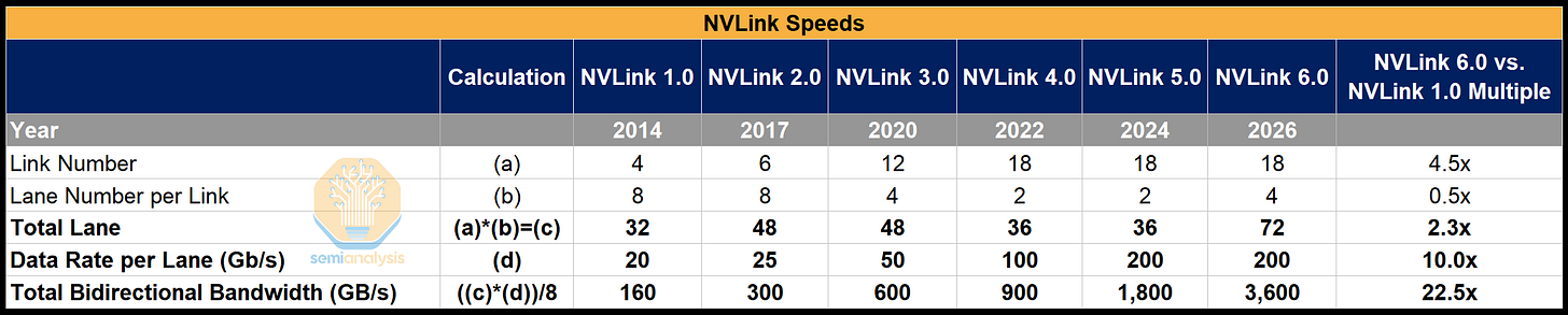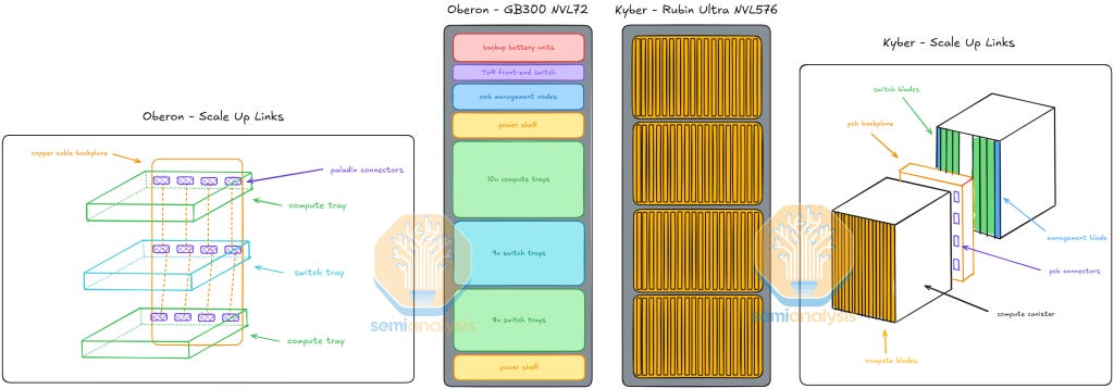On copper, this could only be done within the footprint of a single rack creating immense demands on power delivery, thermal management and manufacturability. The complexity of this system has the downstream supply chain still struggling to ramp up capacity.