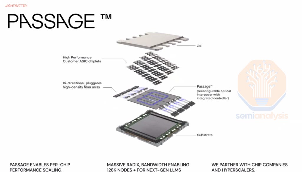 Lightmatter is well known for its Optical Interposer product, the Passage™ M1000 3D Photonic Superchip, but is also introducing a number of solutions to cater to the various phases of the CPO roadmap, with a number of chiplets being taped out at TSMC.