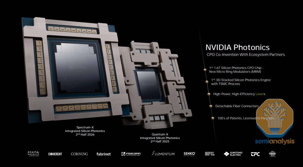 So, if CPO is the solution, why is Nvidia not pursuing it for Rubin Ultra and only for their scale out switches at first? This goes back to supply chain immaturity, manufacturing challenges, and customer hesitation around deployment. The Quantum and Spectrum CPO switches have been introduced to help ramp up the supply chain and get more real world data on reliability and serviceability in the datacenter.