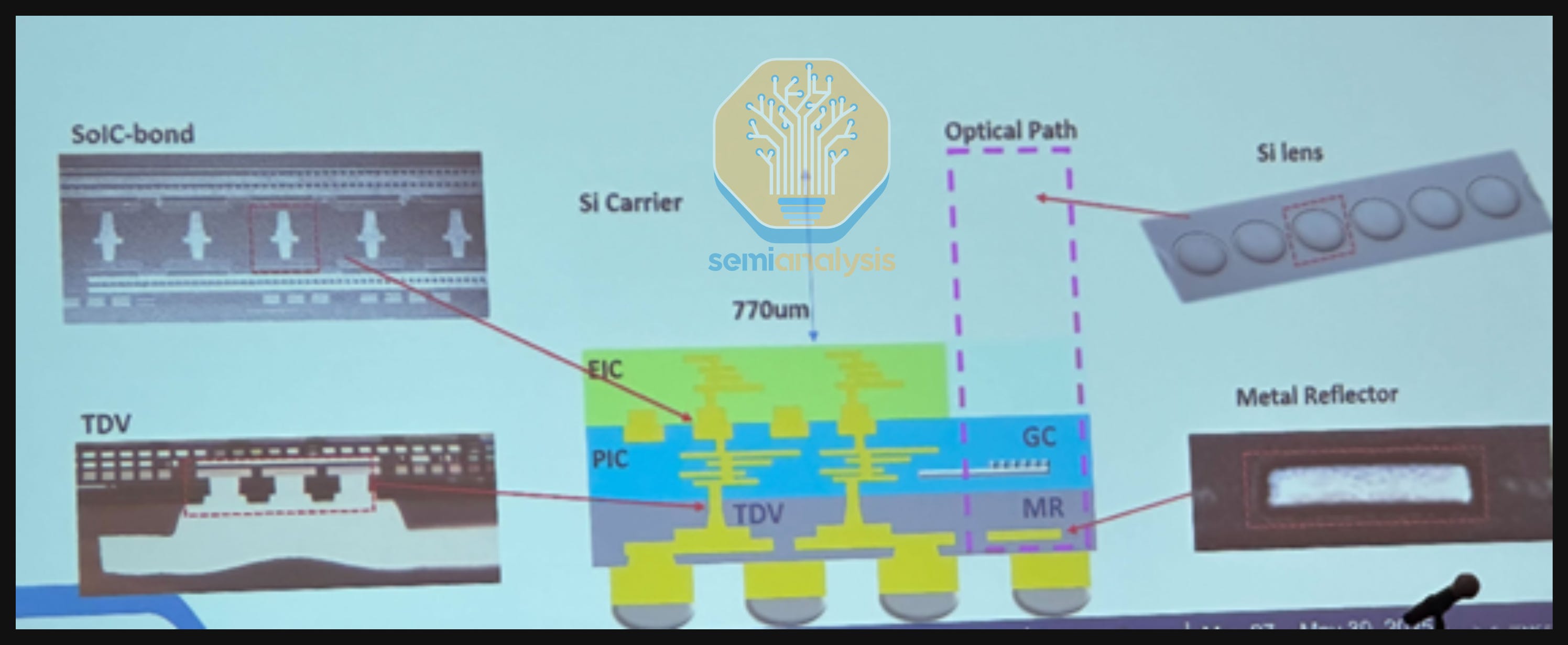 In this design, Broadcom employed a silicon germanium (SiGe) EIC but switched to CMOS in the next generation (i.e. Bailly).