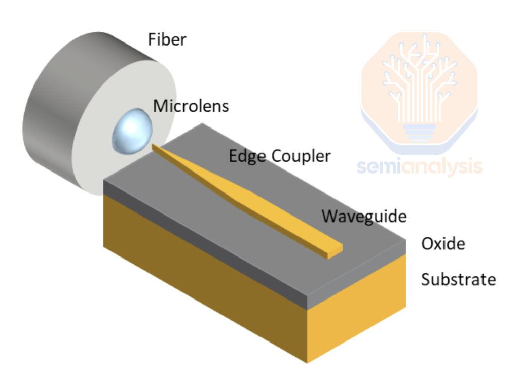A key point of differentiation for Nubis is how they couple fiber. Nubis couples the surface of the PIC, and specifically they use a thin piece of glass to help route and align the fibers. Unlike edge coupling where optical fibers are connected to the chip’s edge, Nubis’s 2D fiber array approach involves connecting optical fibers from the top of the silicon photonics die.