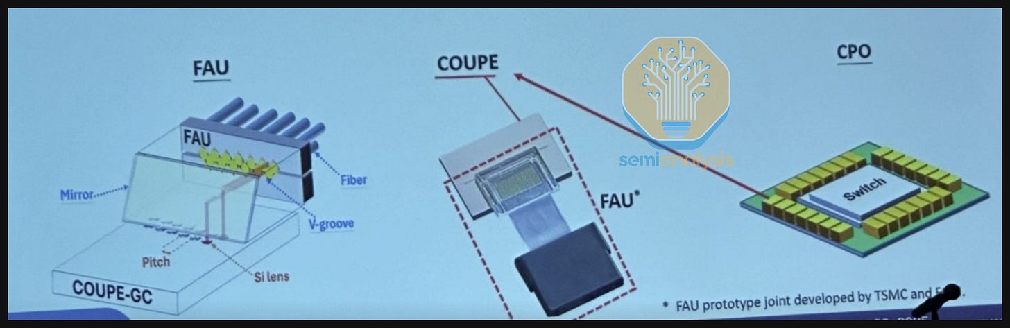 Future generations of Broadcom CPO endpoints are also moving to the TSMC’s COUPE platform – a clear signal that the features COUPE offers provides a path to bandwidth scaling. This will not only be a change in how they package the OE, but also Broadcom’s previous generations have used edge coupling as well as MZMs – both of these choices were simpler from an implementation standpoint, but also less scalable as we discussed above. COUPE is biased towards grating coupling and MRMs which is a dramatic change from their existing approach. Despite Broadcom having the most CPO experience, this change in technical approach means that Broadcom must essentially start fresh on some aspects of their technology. The question is how much help TSMC can provide to make designing easier for Broadcom.