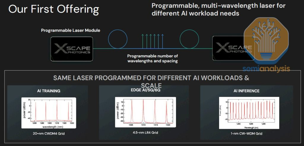 Xscape Photonics is an innovative company that is working on ChromX, a programmable laser that offers 4 to 16 wavelengths, with plans to provide up to 128 wavelengths in the future. By offering up to 128 different colors, ChromX will be able achieve significantly higher bandwidth as compared to existing lasers that only offer 4 to 8 wavelengths. ChromX relies on an external III-V laser alongside an on-chip multicolor generator that helps to generate multiple wavelengths for WDM.