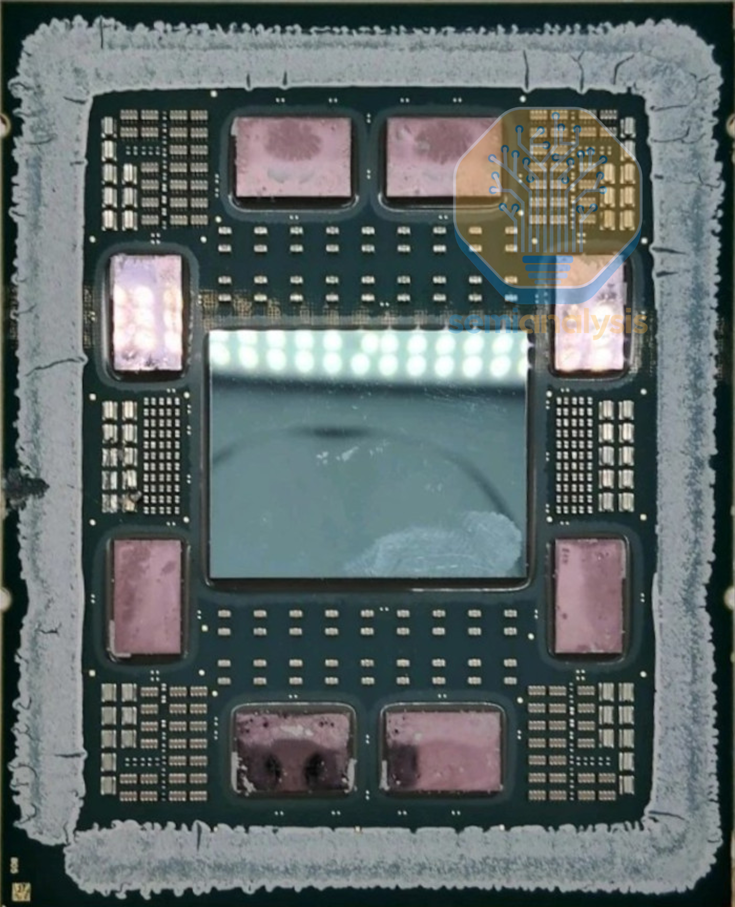 Lastly, 8 small dies can be seen beside the I/O dies next to where the DDR5 interface exits. These are Integrated Passive Devices (IPD) that help smooth power delivery to the chip in the heavily I/O dense area, where the SP7 package routing is saturated with memory channel fanout.
