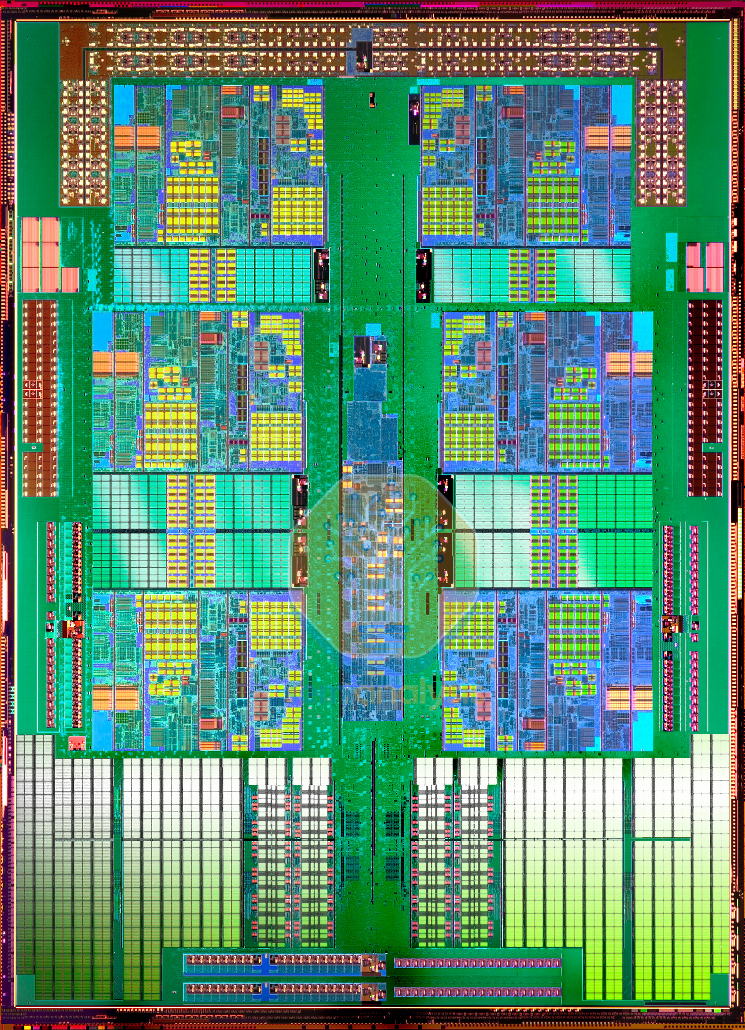 The practical limit for most designs ended at 4 cores, with higher core count processors achieved with multi-chip modules and dual-core modules that shared and L2 cache and data fabric socket between core pairs. The crossbar wiring is usually done in the metal lines above the shared L3 caches, saving area. Intel’s 6-core Dunnington in 2008 used three dual-core modules with 16MB of shared L3.