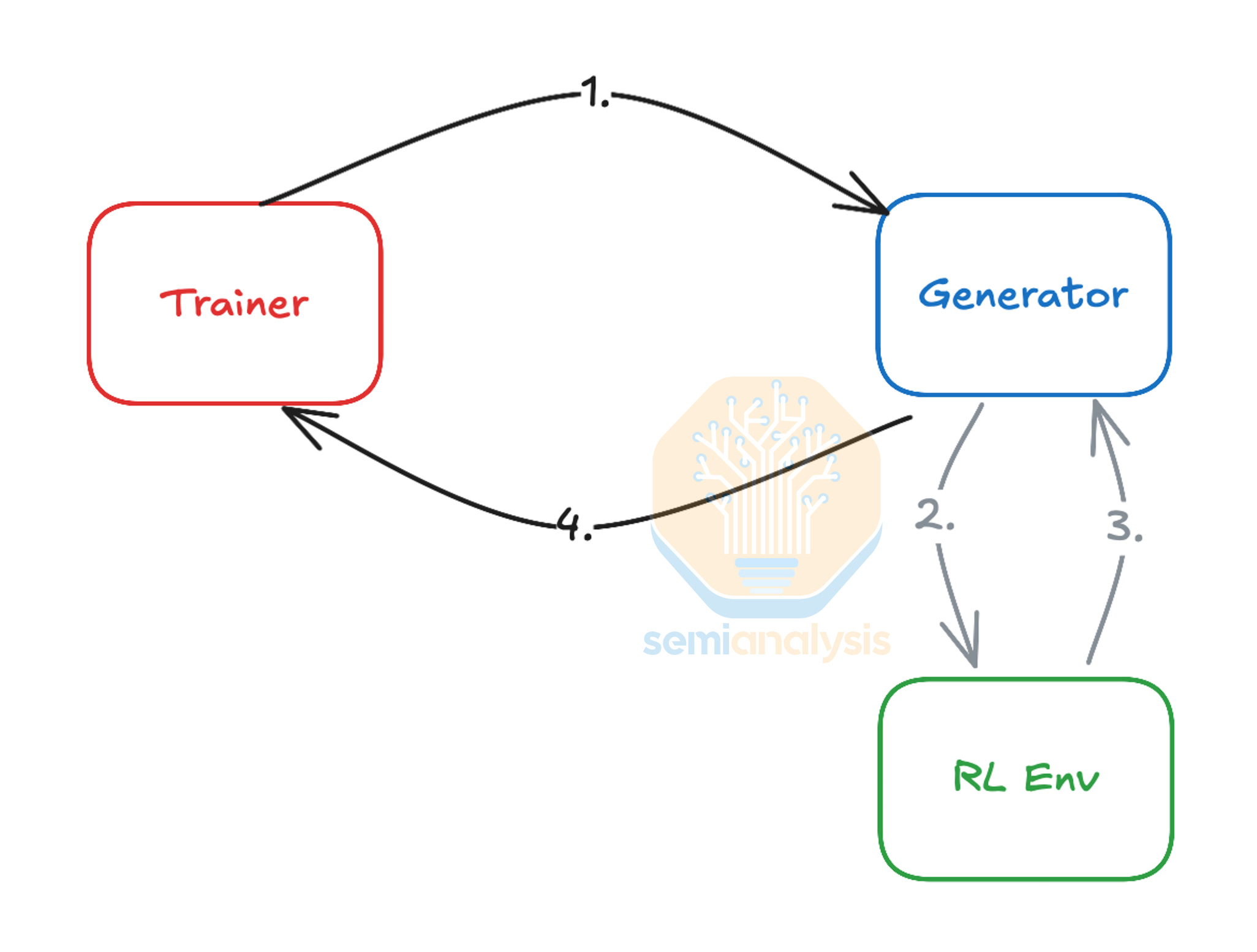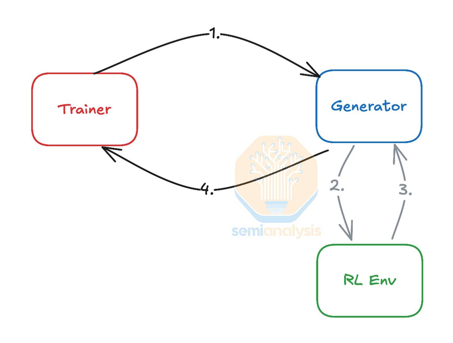 Use of Reinforcement Learning techniques for model improvement increases CPU demand further. From our deep dive on Reinforcement Learning, we see that in an RL training loop, the “RL Environment” needs to execute the actions generated by the model and calculate the appropriate reward. To do this in areas such as coding and mathematics, lots of CPUs are needed in parallel to perform code compilation, verification, interpretation, and tool use. CPUs are also heavily involved in complex physics simulations and verifying generated synthetic data at high precision. The growing complexity of RL environments needed to scale models further thus necessitates large high-performance CPU clusters located close to the main GPU clusters to keep them busy and minimize GPU idle time. This increasing reliance on RL and CPUs in the training loop is creating a new bottleneck, as AI accelerators are improving in Performance per Watt at a far greater rate than CPUs, meaning a future GPU generation such as Rubin may require an even higher ratio of CPU to GPU power than the 1:6 ratio seen in Fairwater above.