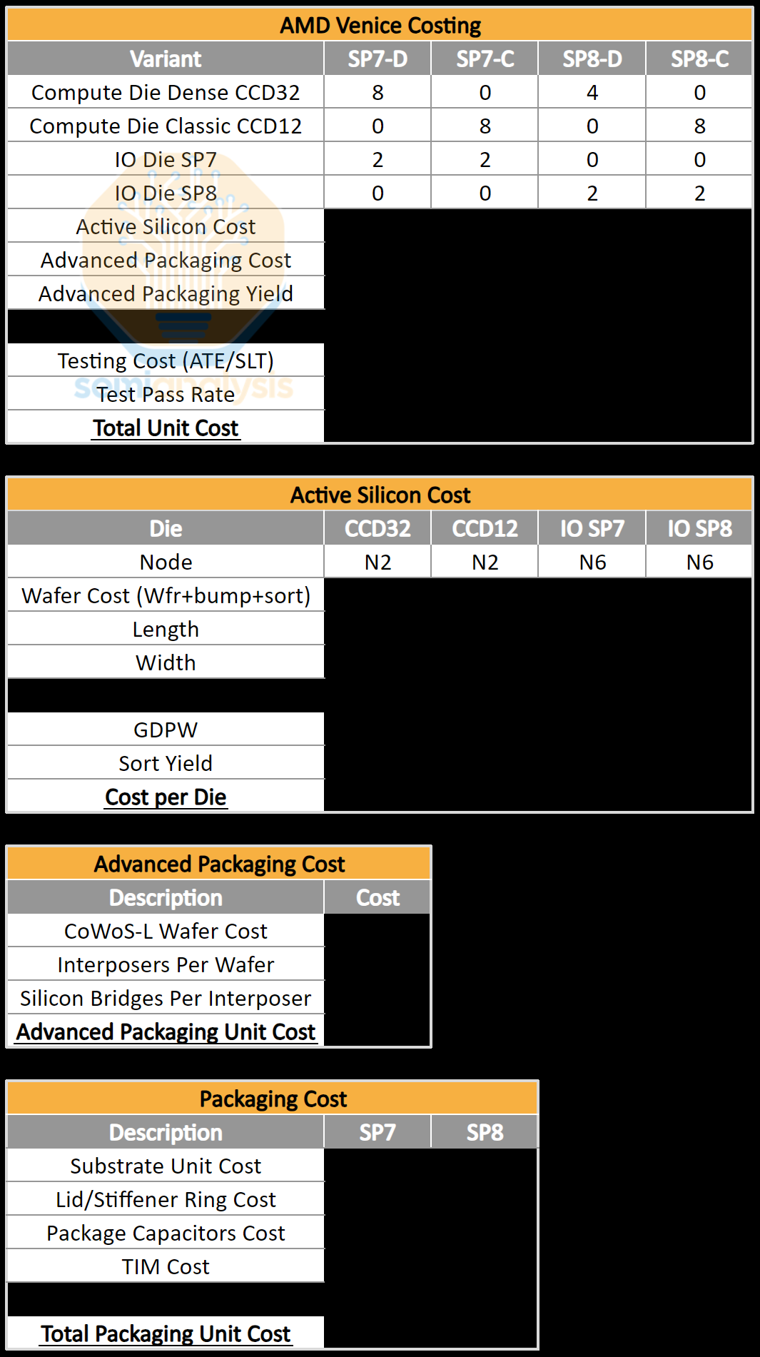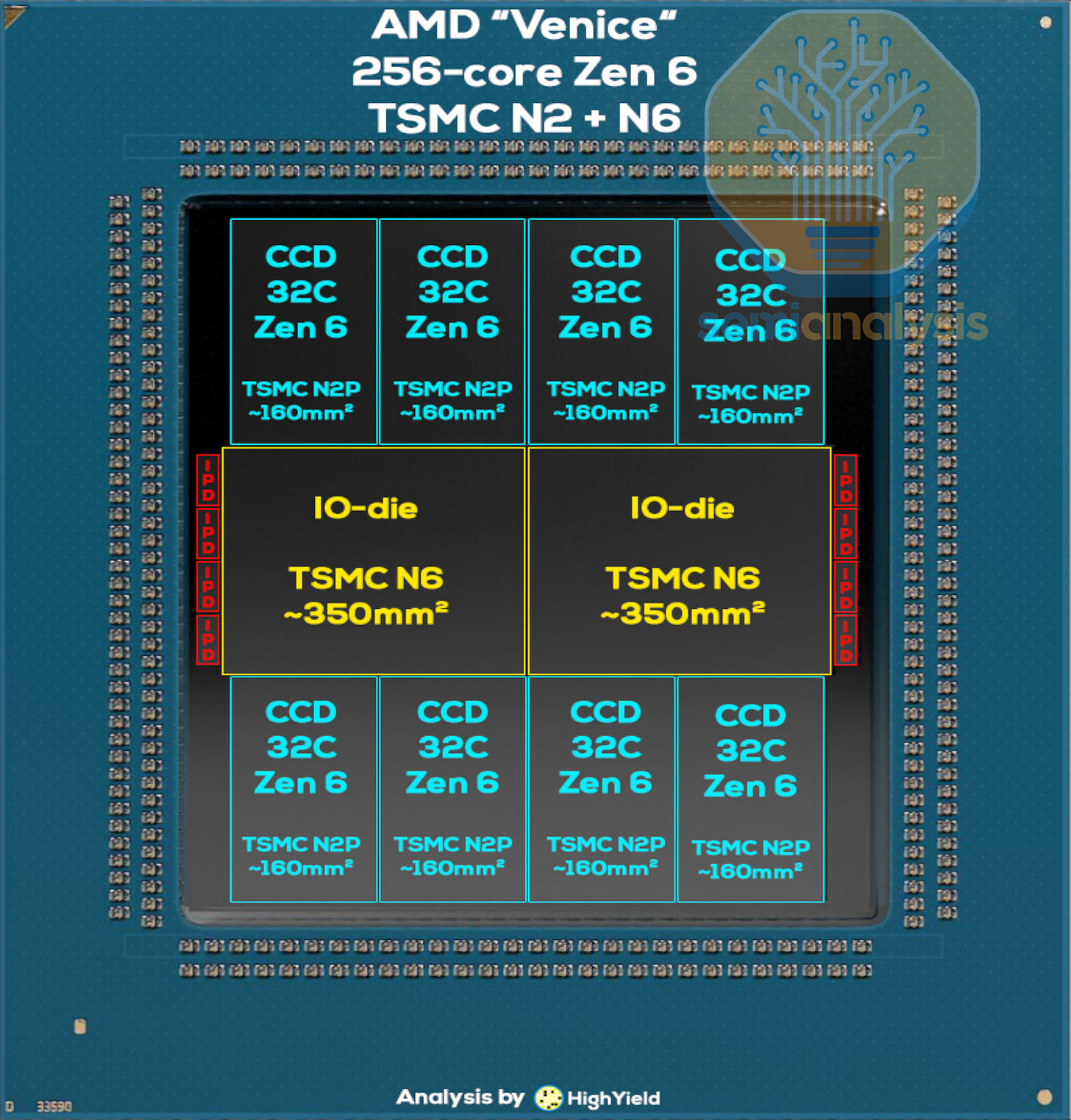 While Intel went away from EMIB, AMD finally adopts the equivalent advanced packaging technology for Venice, with high-speed short reach links connecting the CCDs to the I/O die. We have the volumes for this in our Accelerator, HBM, and Advanced Packaging Model.