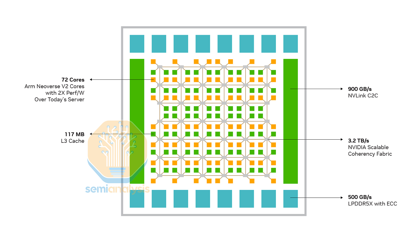 SemiAnalysis offers detailed Bill of Materials costing based on our extensive knowledge of the supply chain. To understand exact die sizes, configurations, topologies, performance estimates and competitiveness with Hyperscaler ARM CPUs, please contact us at Sales@SemiAnalysis.com for bespoke consulting and competitive analysis services. We have detailed costing and breakdowns of AMD Turin, Venice, Intel Granite Rapids, Diamond Rapids, NVIDIA Grace, Vera and hyperscale ARM CPUs from AWS, Microsoft, Google and more.