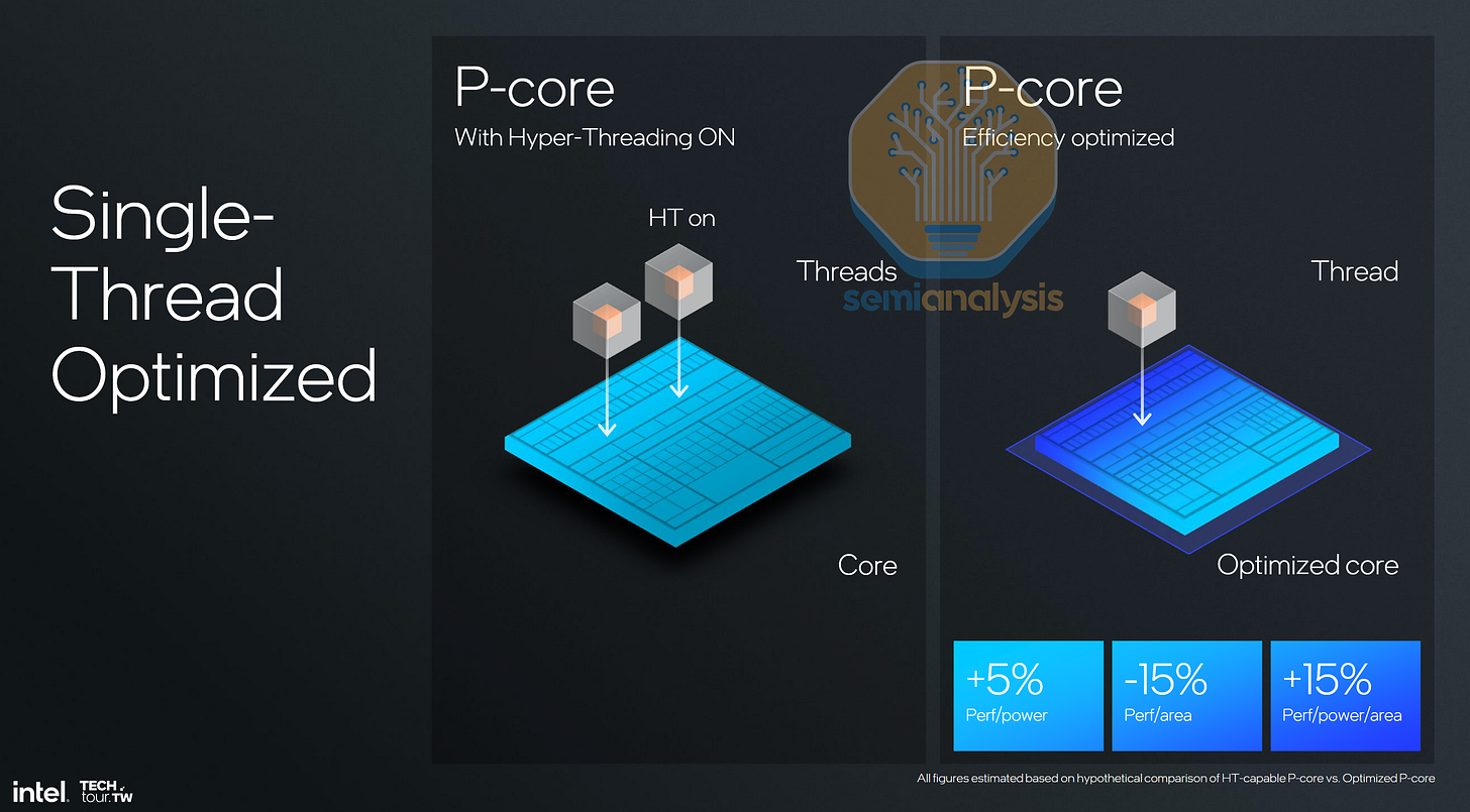 Though worse latencies are problematic, the worst issue with Diamond Rapids is the lack of SMT. Spooked by the Spectre and Meltdown vulnerabilities that fundamentally affected Intel more than AMD, their core design team began designing P-cores without it, starting with Lion Cove in the 2024 client PC. Intel rationalized it at the time by claiming the area saved by removing SMT functionality would give better efficiency at the expense of raw throughput. This was fine for PC designs as they had integrated E-cores alongside that would help bolster multi-threaded performance.