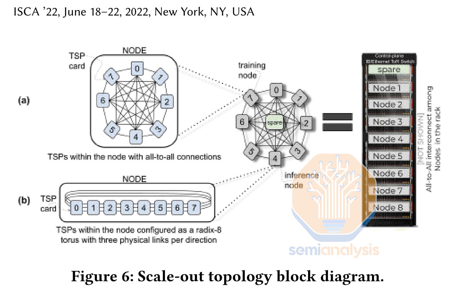 In the case of the Mixtral model, Groq had to connect 8 racks of 9 servers each with 8 chips per server. That’s a total of 576 chips to build up the inference unit and serve the Mixtral model. Compare that to Nvidia where a single H100 can fit the model at low batch sizes, and two chips have enough memory to support large batch sizes.