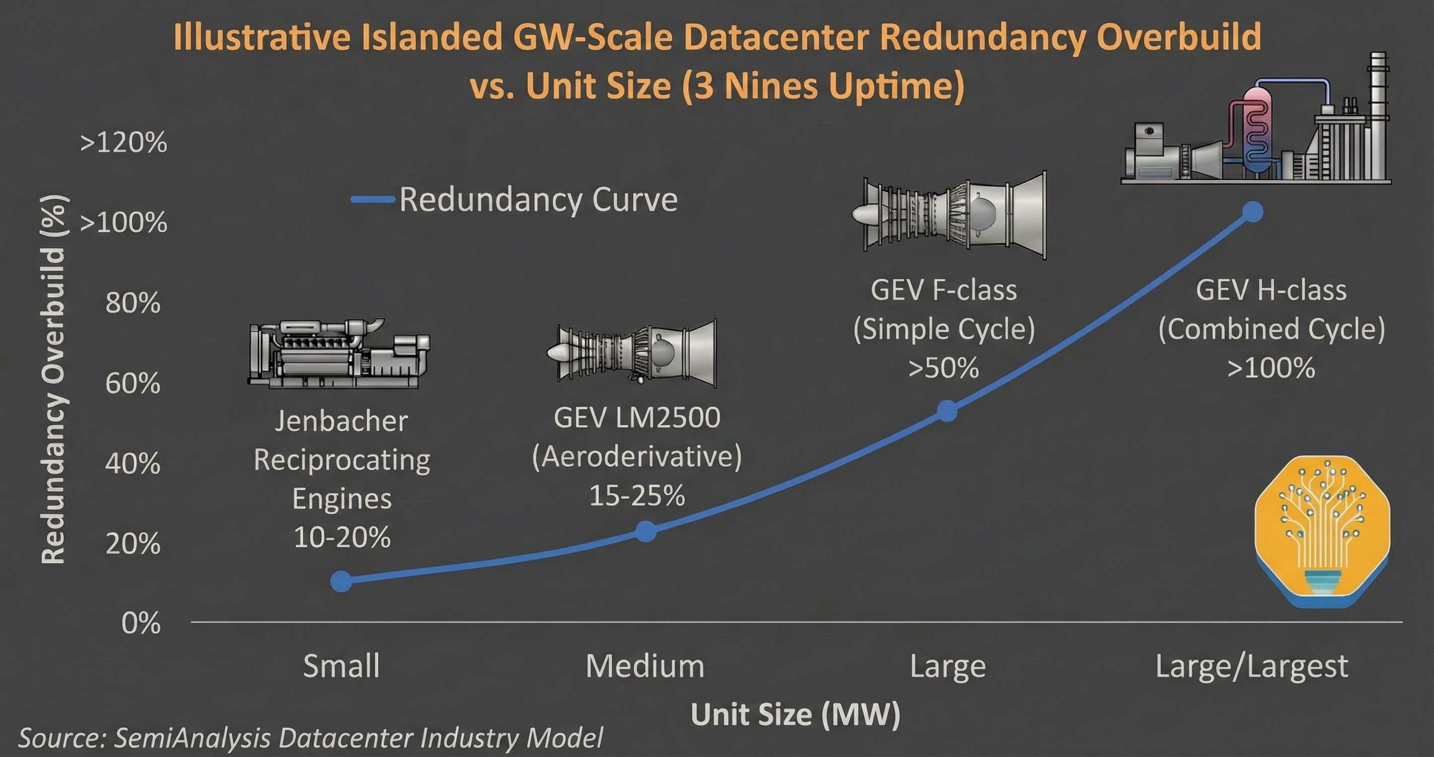 To match the “three nines” of uptime provided by the grid, an onsite power plant must be “overbuilt” for redundancy. This is typically the key reason for higher onsite generation power costs, relative to the grid.