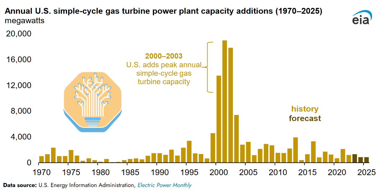 Since the mid-‘90s, the gas turbine industry has seen two boom-bust cycles rock the industry. The first boom, between 1997 and 2002, was driven by electric power deregulation in parts of the United States, which pulled in new companies as independent power producers, as well as (ironically enough) high expectations of electric demand growth coming from the dotcom bubble, as popularized by the Huber and Mills paper “The Internet Begins with Coal.” Large players like Calpine, Duke, Williams, and NRG placed block orders for turbines, sending GE Vernova (then GE Power) and Siemens Energy (then Siemens AG’s power segment) into lunar order volumes. GE shipped more than 60 GW of gas turbines in 2001; Siemens peaked at 20+ GW in 2002.
