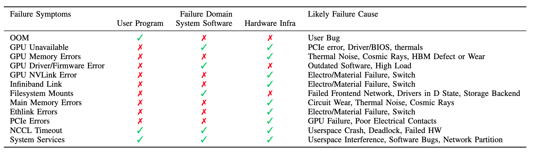 Not every large-scale failure looks like a dead GPU or dead node. A meaningful share of incidents first appear as stuck collectives or watchdog timeouts, which are just symptoms. From a TCO perspective, that means goodput loss includes not only repair or replacement time, but also the time required to detect, attribute, and unwind a hung collective across the participating ranks.