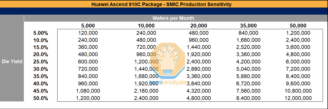 While TSMC has provided 2.9 million dies which is enough for 800 thousand Ascend 910B’s and 1.05 million Ascend 910C’s across 2024 and 2025, the SMIC production has the potential to massively grow the capacity if HBM, wafer fabrication tools, tool servicing, and chemicals such as photoresist are not effectively controlled.