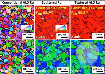 Samsung introduced Grain Orientation Engineering through Ruthenium Atomic Layer Deposition (ALD), achieving a highly textured film with 99% (001) orientation. Compared with traditional sputtering (PVD) or conventional ALD processes, this approach significantly reduces electron scattering at grain boundaries. Experimental results indicate that in ultra-fine interconnects with a cross-sectional area of only 300 nm², ruthenium lines fabricated using orientation engineering exhibit 46% lower resistance. Also, TCAD simulations on Gate-All-Around (GAA) FET structures showed a 26% RC reduction when using highly textured Ru M1 lines.