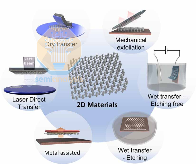 The catch is that this is no longer a monolayer physics story. It is a manufacturing story. The first gating factor is high-volume manufacturing: no matter how elegant the device architecture looks on paper, the industry only gets paid when it can repeat the same outcome across a 300 mm line. Many synthesis conditions used to achieve high-quality 2D films come with steep integration penalties, including growth temperatures that can exceed ~800 °C, plus broader environmental and safety concerns tied to precursors and chemistries. That is why the practical near-term path has increasingly emphasized transfer-based integration at relatively low temperatures, with IMEC’s 300 mm-compatible dry transfer highlighted this year as a way to mitigate void formation and improve post-transfer uniformity. At the same time, transfer remains hard to scale for real semiconductor manufacturing. Direct growth on 300 mm target wafers is still the long-term target, not an optional nice-to-have.
