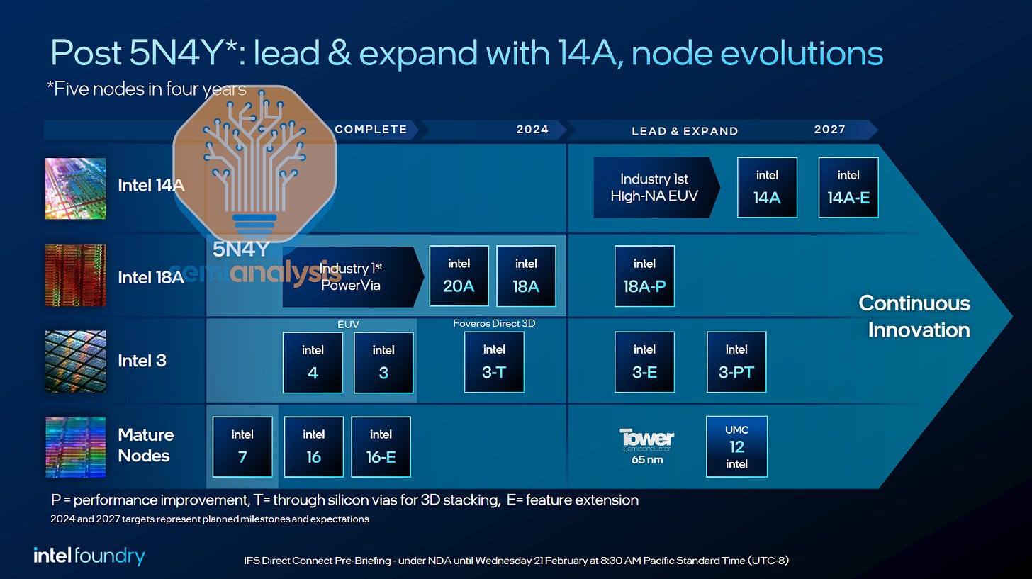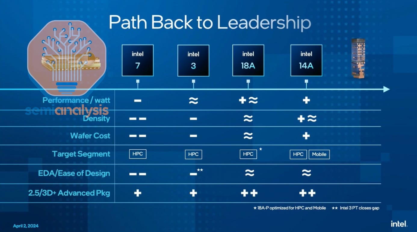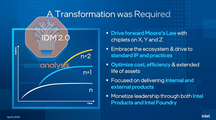 Today we’ll cover Intel’s restructuring of the company, the new leading-edge process roadmap, IP and EDA, the foundry cost wall, TSMC’s cashflow engine, Intel’s lack thereof, their dire financial position despite various subsidies, the costs of fabs, their datacenter CPU competitiveness, their foundry customer wins including the “whale customer” and various other customers/chips/packaging wins.