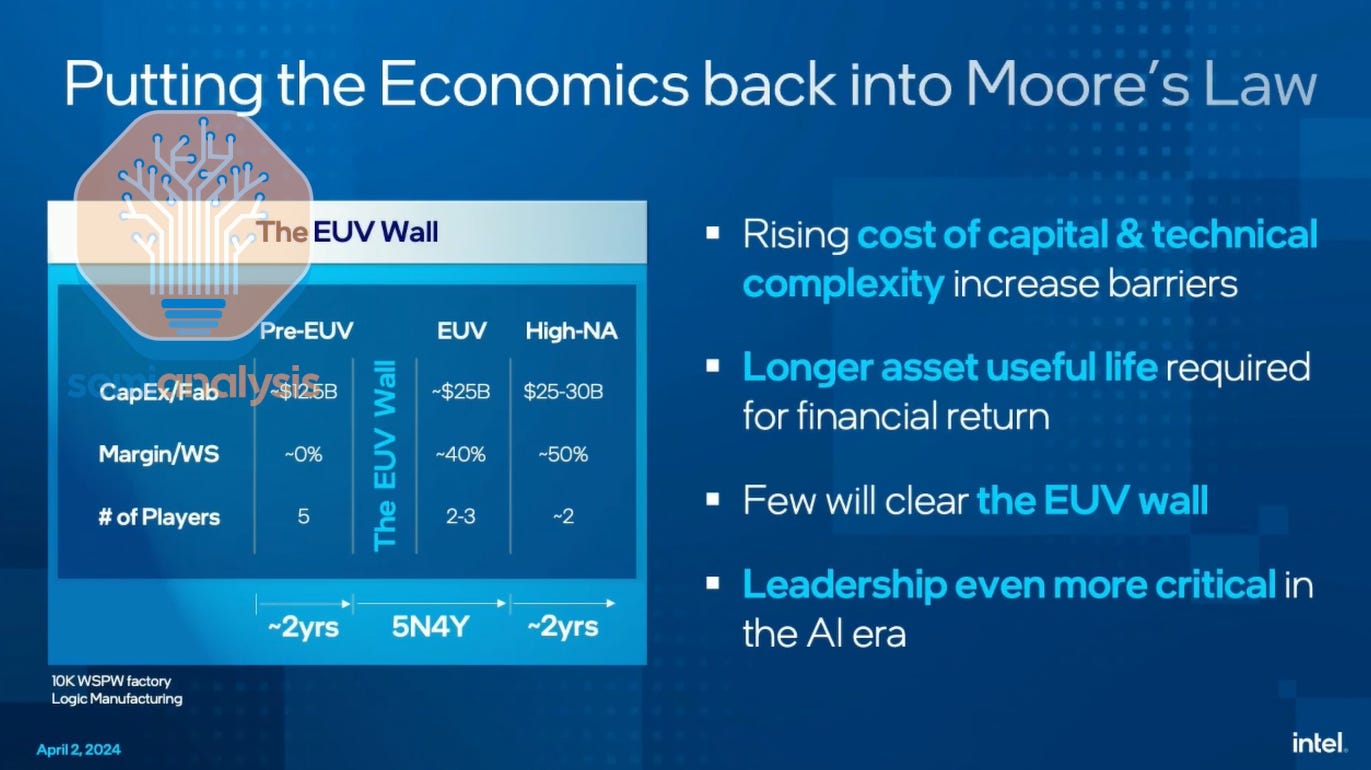 The primary reason Intel needs foundry is volume. Costs of transistors continue to scale with shrinks. Intel admits in the 2nd half of the 2010s they had minimal cost scaling, but with the rapid progress to 7, 4/3, and 20/18A, they will bring back the economic scaling.