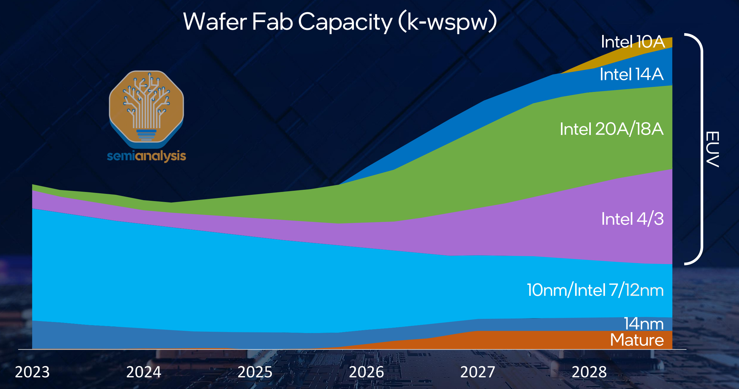 Intel’s charts like the below from their foundry day also show that they have no plans of ramping Intel 4 production meaningfully. Intel 18A is only significant wafer volume in 2026.