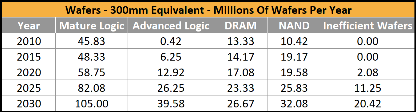 First, ASML showed their estimates for millions of wafers per year. These are quite interesting to dive into.