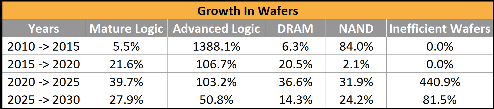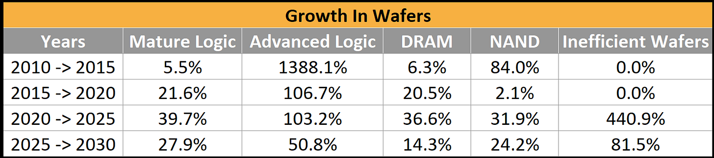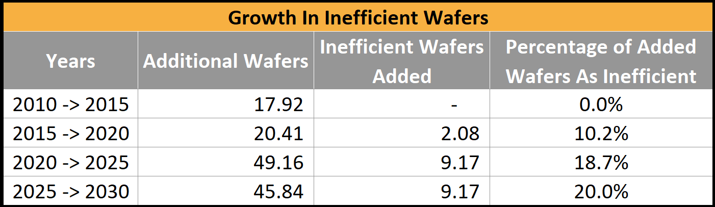 Furthermore, when looking at incremental capacity, the picture looks even worse. 20% of the wafers added from 2025 to 2030 are considered inefficient by ASML.