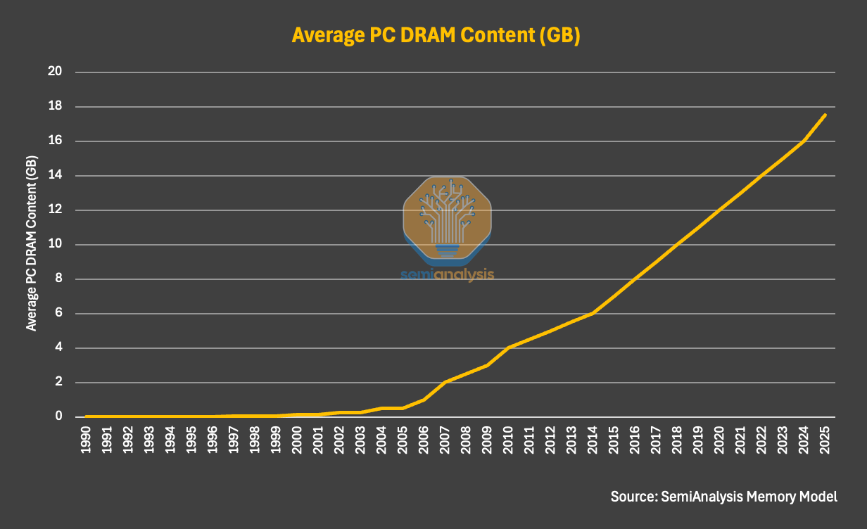 There have been several of these product cycle inflections over the past few decades. New computing platforms like the PC, the smartphone, cloud computing, and now AI accelerators drove abrupt increases in both the number of systems and memory content per system. In prior cycles, these demand inflections often caught memory suppliers off guard, a dynamic we will discuss in the following section.