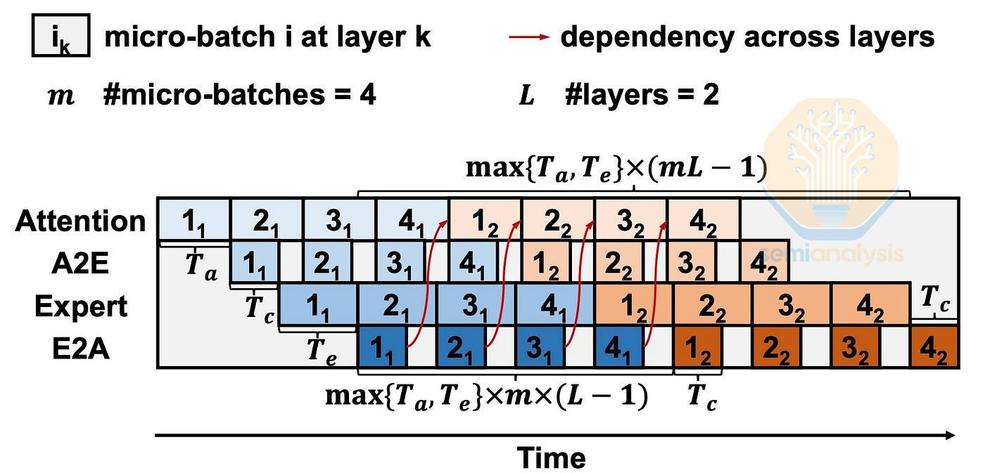 To hide the communication latency of dispatch and combine, we employ ping pong pipeline parallelism. In addition to splitting batches into micro-batches and computation pipelining like standard pipeline parallelism, the tokens dispatched to the LPUs are combined back to the source GPUs, so they ping pong between the GPUs and the LPUs.