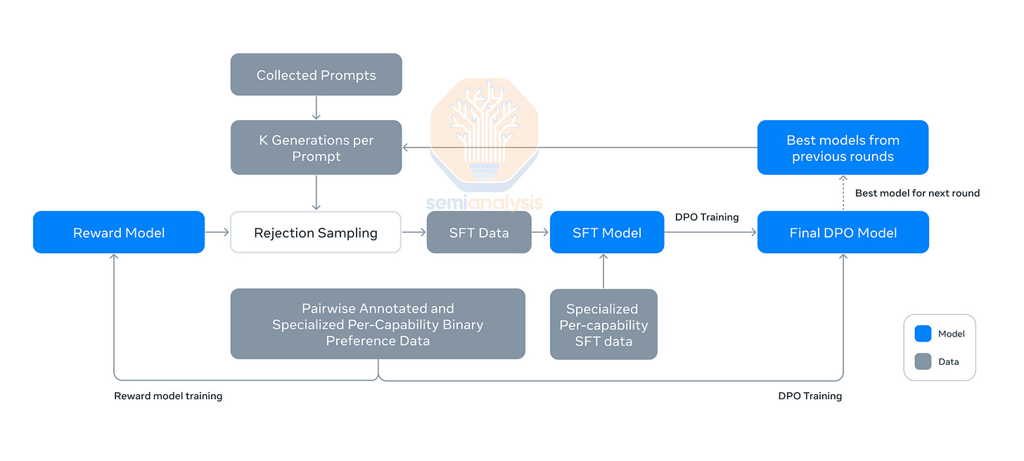 Meta eventually discovered the lesson the other labs already knew: DPO does not scale as well as PPO - and that they must turn to RLAIF to continue to improve their post training. This was shown in the release of the newest LLAMA 3.3.