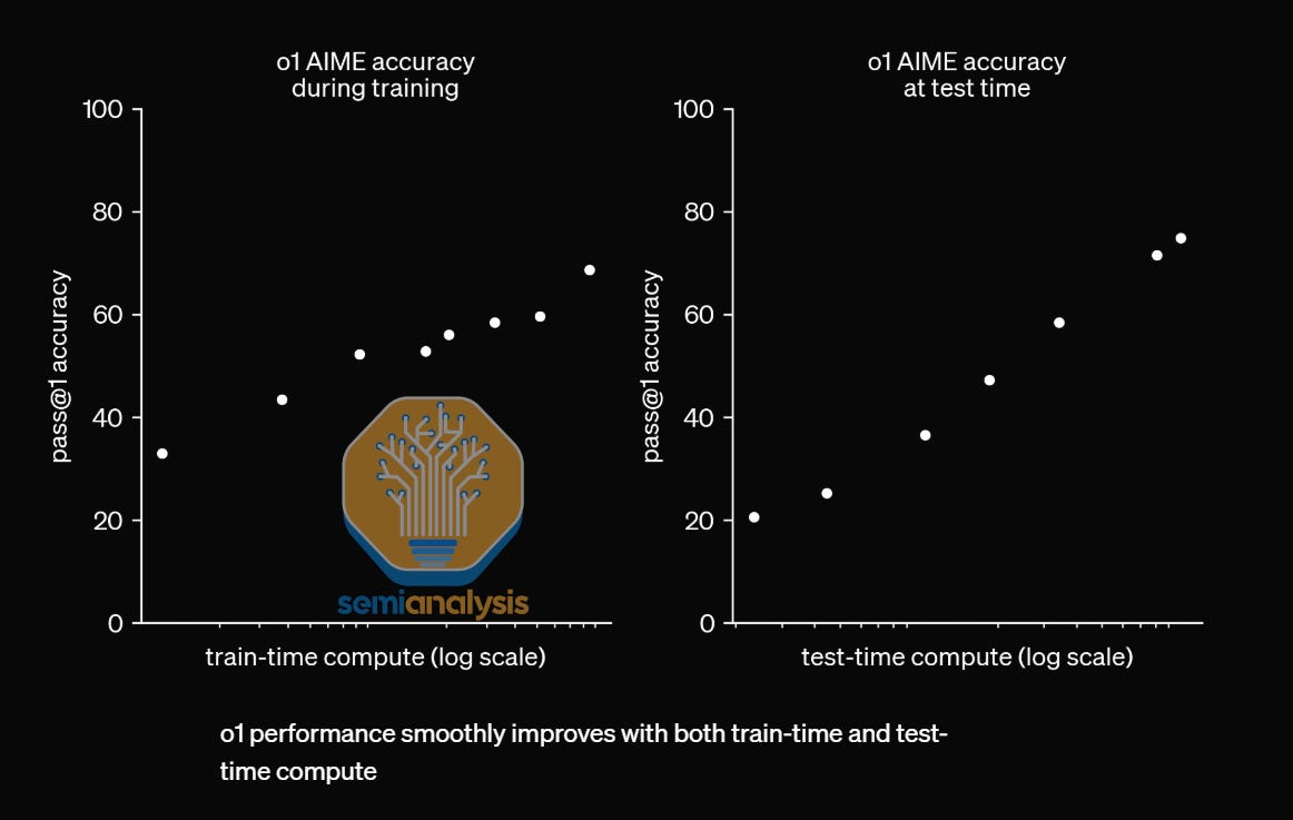 This means operators of inference systems for reasoning models are limiting the length of reasoning chains of thought to keep context lengths reasonable and prices down so as to serve an economical number of users at a reasonable token to token latency. It follows that today’s reasoning models are performing with one arm tied behind their back and could scale very significantly in performance as more capable inference systems such as the GB200 NVL72 come to market. Once economical, allowing o1 to adjust the length of its reasoning chain and compute employed will be a technique to harness test-time compute scaling.