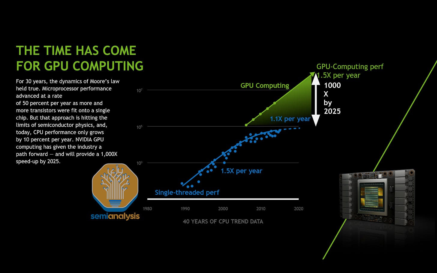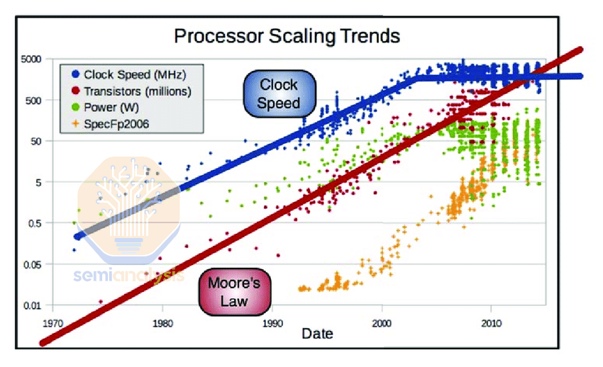 Today’s debate on AI scaling laws is not dissimilar to the decades-long debate around compute scaling and Moore’s law. Anyone who tries to measure CPU compute primarily by clock speed – a common metric used before the late 2000s around the time of the end of Dennard Scaling – would argue that we have not made any progress at all since then. In reality, compute has been advancing all along – when we hit a wall on processor clock speed, the focus shifted to multi-core architectures and other methods to drive performance, despite power density and cooling constraints.